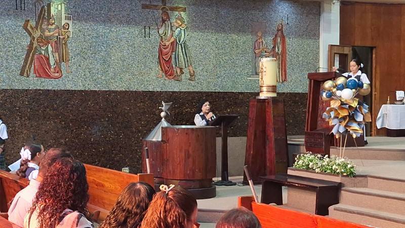 Uno de los momentos más emotivos fue cuando la maestra Quetzali pasó lista por última vez, mientras los estudiantes recibían su reconocimiento. También se entregaron menciones especiales a los alumnos con mejor calificación de la generación. Como parte del legado de nuestras Misioneras Cordimarianas, cada graduado recibió un cuadro del Inmaculado Corazón de María, recordándoles la formación espiritual que siempre les acompañará.