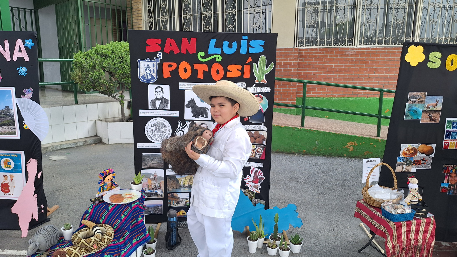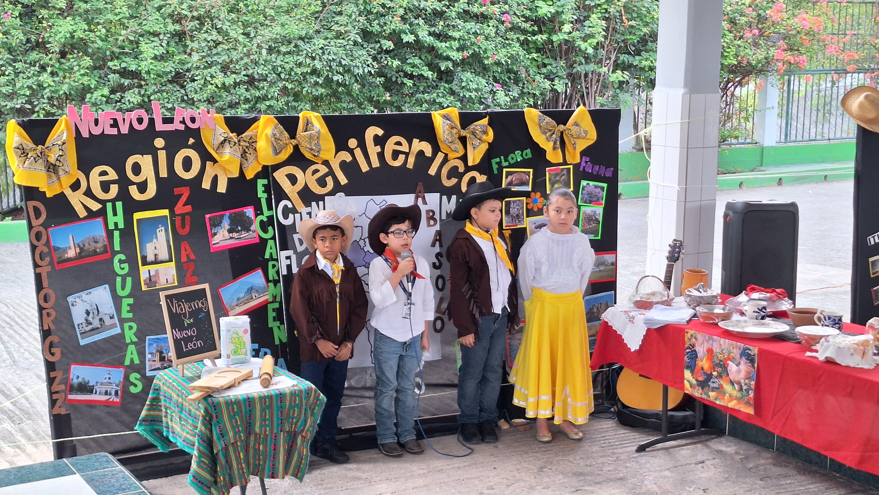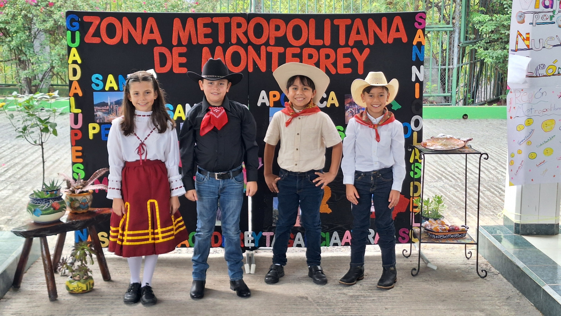 Durante Viajemos por Nuevo León y México, los estudiantes de tercer grado de primaria se encargaron de investigar y exponer sobre las distintas regiones de nuestro estado. Sus presentaciones incluyeron elementos de geografía, gastronomía, fauna, flora y tradiciones propias de Nuevo León, destacando la riqueza de nuestra tierra.